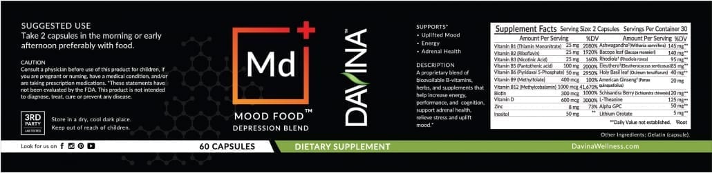 Mood Food contains bioavailable B-vitamins along with powerful adaptogenic herbs scientifically studied for their ability to protect the body and mind against the damaging impacts of stress and anxiety, which often accompany, and may exacerbate, depression. B-vitamins are depleted more quickly during times of high stress and anxiety, and decreased levels have been linked to depression, fatigue, anxiety, and irritability. This may be because B-vitamins are building blocks of important hormones and brain neurotransmitters (chemicals) that are vital for a healthy mood.Â