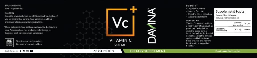 Ingredients: Vitamin C (as ascorbic acid) (900 mg)