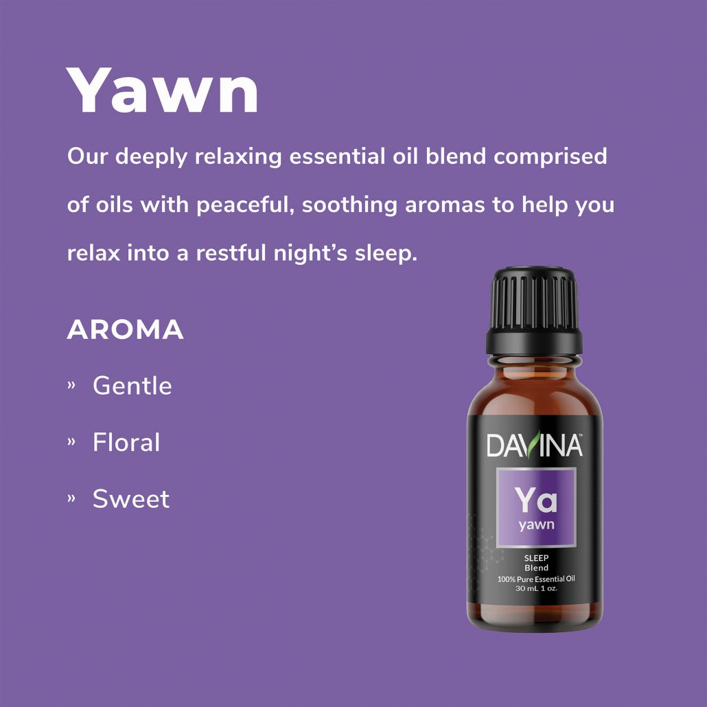 YAWN is a different combination of oils than I have ever used for sleep in the past. I don’t always have the ability to turn my thoughts off but I can generally reduce the frequency when I add YAWN to my diffuser about 15 minutes before going to bed. It’s the perfect transition to getting a good night’s sleep.